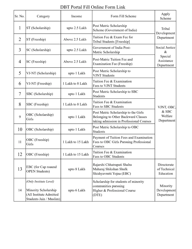 Scholarship Schemes Details