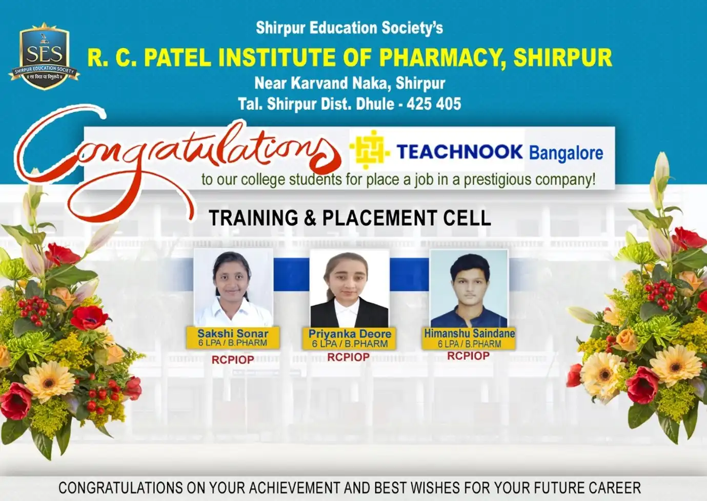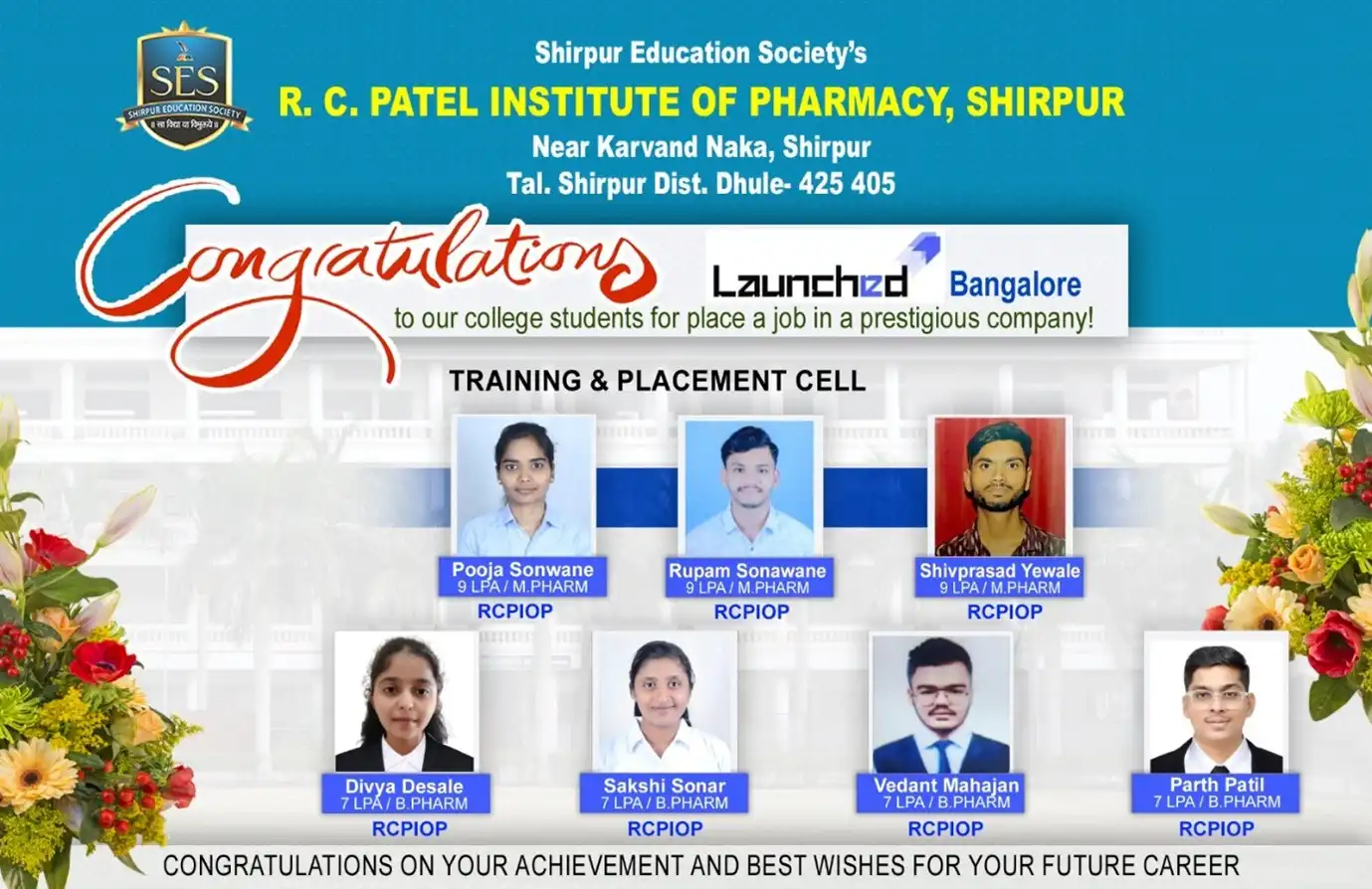 List of B.Pharm 2024-25 Passout Students Placed in Industries.